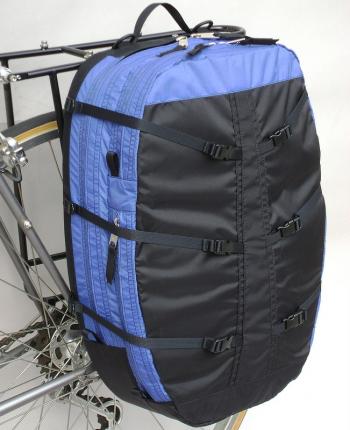 In the bicycle industry there is a lot of attention given to low-mount front racks. The attention is on where to place gear, but not how, because the panniers promoted and sold within the industry only address where, and in where, only in one direction: low. Very few of the panniers have any kind of compression and none have effective mounting systems. So the suggestion has always been that if gear is packed low that that is all there is to it, and that all potential bicycle handling problems are solved and over. They're not, not by a long shot. The emphasis needs to be on 'how.' How stable is gear when it is mounted low? How far away from the rack and lateral center-line of a bike is gear when it is mounted low? How well is gear located in a fore/aft position on racks and a touring bike when it is placed low? How rigid is the unsupported section of a touring rack below the bicycle hub? Merely placing gear lower on a bike doesn't do much in itself. It actually does very little when not augmented by complimentary designs. (RBD, ATS PERFORMANCE ADVANTAGE)
