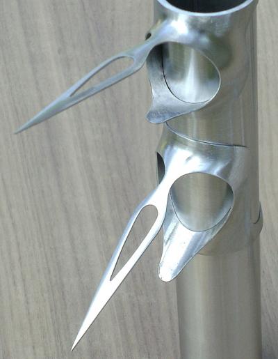 This is the photo of the sample lug that I sent off to the person for whom I am building the Encore. Normally I dislike lugs that have windows that are within the castings, and I fill them up with brass before I braze the lugs into a frame. But, in this case I had to come up with a design, upon request, that I liked and this is what I came up with in this long-point lug design. I should also make note of the fact that I think that lugs are normally much too small and that they get swallowed up in a bike frame. This lug may look quite large (partly due to the short lens of my cheap camera) but in a 56cm frame it will seem quite balanced in size.