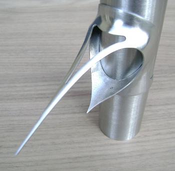 A Standard-Level lug in the process of being created. I use a needle-point design as the standard lug design at this level of frame, but I vary it in its overall shape and length from bike to bike.