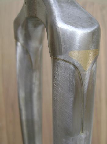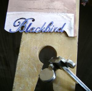 I had never built a frame for a blackbird before, but the name plate gave me the unique opportunity. It also gave me the opportunity to use soldering techniques that I learned in making fine jewelry. I've shown photos of arrowhead-shaped fork-crown extensions in this site. The name plate is from that frame.