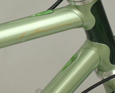 If you see one of my bicycle frames and it has my small signature on the top tube of the bicycle, it is a frame built to my current standards (fall 2012). If it has a large signature on the down tube of the bike, it was built to a previous standard in the past and is not an Ultra-level or Signature-level frame that I built.